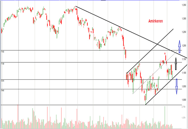 גם השבוע היה ניסיון לרדת מתחת ל1080 אך כמו בפעמיים הקודמות גם הפעם הקונים התייצבו ויצרו קו תקיפה באזור הזה ודחפו את השוק כלפי מעלה. יש מלחמה עזה על כיוון היציאה מ1100 נקודה שבשבוע האחרון שימשה כמגנט למדד וכל פעם שנדמה היה שהנה השתחרר הפקק היה מי שדאג להחזיר אותנו אליה.