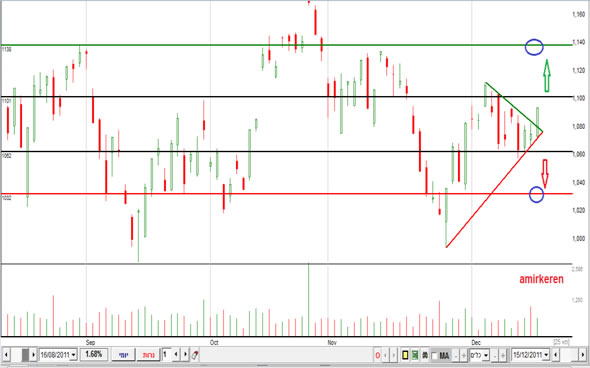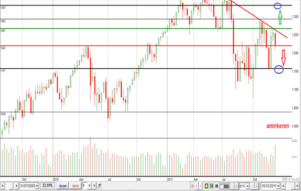 בהיבט הטכני עד יום רביעי כל הגרפים היו בשורט. בנקים לא הצליחו לפרוץ 970, S&P לא מצליח לפרוץ 1267, מעו"ף לא מצליח לפרוץ 1100, אירו\דולר לא מצליח לחלוף על פני 1.31, נאסדק תקוע מתחת ל 2680 , דאקס יורד מתחת ל 5900 והכל נראה כאילו אנחנו עם הפנים לכיוון מטה. מיום חמישי רוב הגרפים כבר פחות החלטיים ונראה כאילו יש הסכמה בין הטכני לבין האינטרס של סוף השנה (ראלי?). עכשיו נותר לראות מה תהיה ההחלטה ולאיזה כיוון יצאו מכאן למרוץ של שבועיים עד לגונג האחרון של שנת 2011.