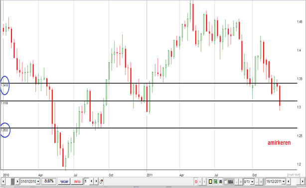 אירו\דולר – (ראה גרף בהמשך) היה במוד שלילי כל השבוע אך ביומו האחרון של השבוע שינה פניו. פריצת 1.31 תסמן את ההיפוך המיוחל עם יעד ב 1.315 --- > 1.32 בואכה 1.34 מנגד היעד 1.26