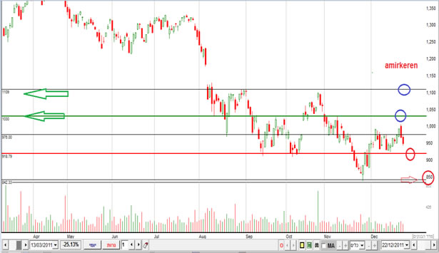 בנקים – (ראה גרף בהמשך) מתקשים לפרוץ 1000 אבל פריצתה תוביל עד ל 1030 --- > 1100 מנגד שבירת 919 תוביל לירידה לכיוון 880 ---- > 845 --- > בואכה 750