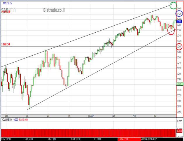 פריצת 1400 ואחריה 1420 תוביל למהלך עד 1440-1450 כאשר בנקודה זו לערך צפוי להכנס המהלך הגדול הבא הערכתי כ 100 עד 150 נקודות כלומר פריצתה תוביל ל1550 ועד 1600 ומנגד אי פריצתה היעדים 1350 ועד 1300 בשלב ראשון.