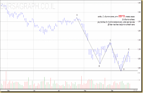 גרף זה מראה לנו על מגמה ראשית יורדת, שיאים יורדים המלווים בשפלים יורדים