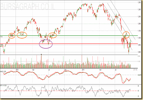 על פי גרף זה אני רואה רמת תמיכה\התנגדות הרמת 1059. בגרף רואים (העיגולים הסגולים) איך הרמה הזו תומכת בעבר.