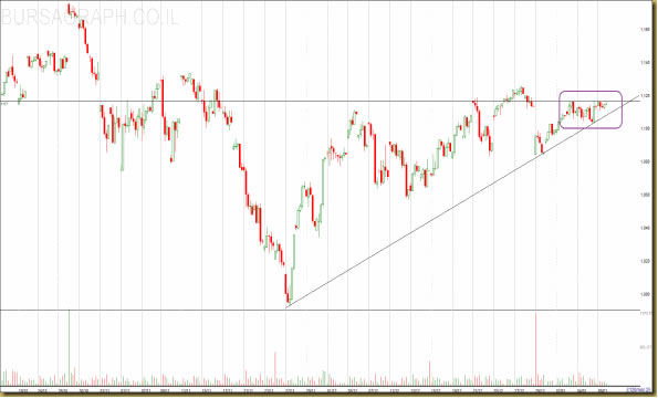 שהגענו בדיוק לרמת התנגדות, פריצה של רמה זו (1115) תוביל לדעתי לגבול העליון ברמת 1174.