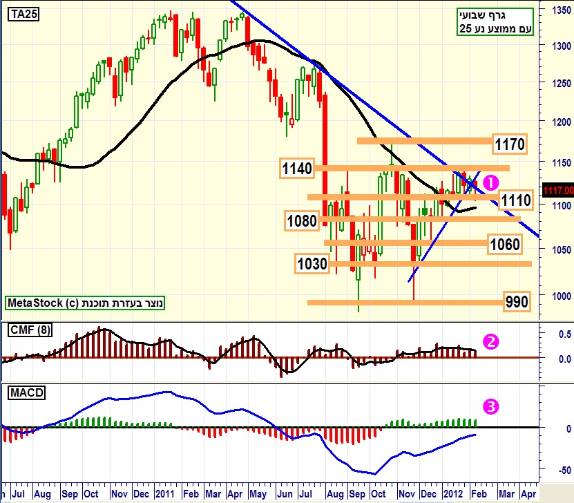 מספיק כוח לפריצת רמת ההתנגדות הקשה סביב 1140. מדד תא 25 אינו מסוגל לכך כבר 5 שבועות שלמים,