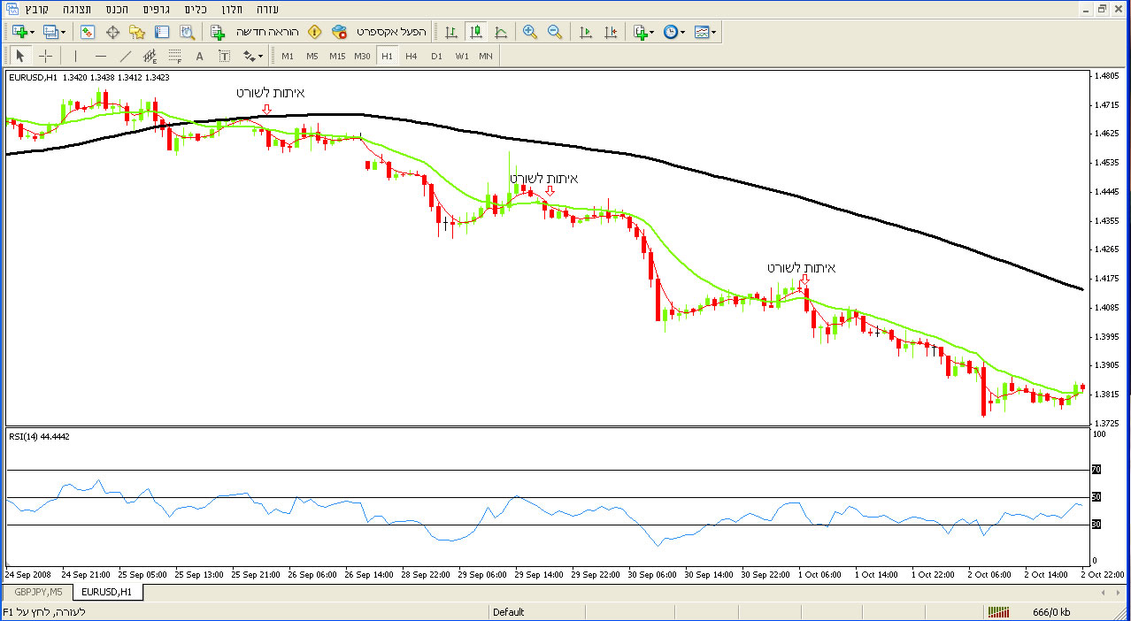 שיטה נוספת המבוססת על חיתוכי 3 ממוצעים נעים אך הפעם בשילוב עם אינדיקטור RSI