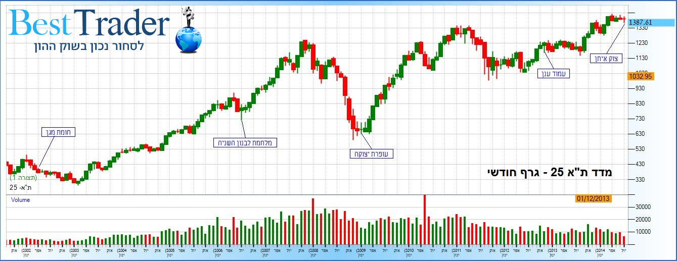 הבורסה לניירות ערך, כך רובנו נוטים (וטועים) לחשוב, מגיבה באופן שלילי מיידי למתיחות בטחונית, מבצעים ומלחמות. בפועל הנתונים מצביעים על התנהגות שונה. כדי לנתח את הנתונים הלכנו אחורה בזמן והתחלנו לנתח משנת 2002 (מבצע חומת מגן) ועד היום. פרק זמן זה ישקף (לדעתינו) באופן נכון ומדויק יותר את דרך המסחר המודרנית ואופי התגובה של הסוחר להשפעות ביטחונית.