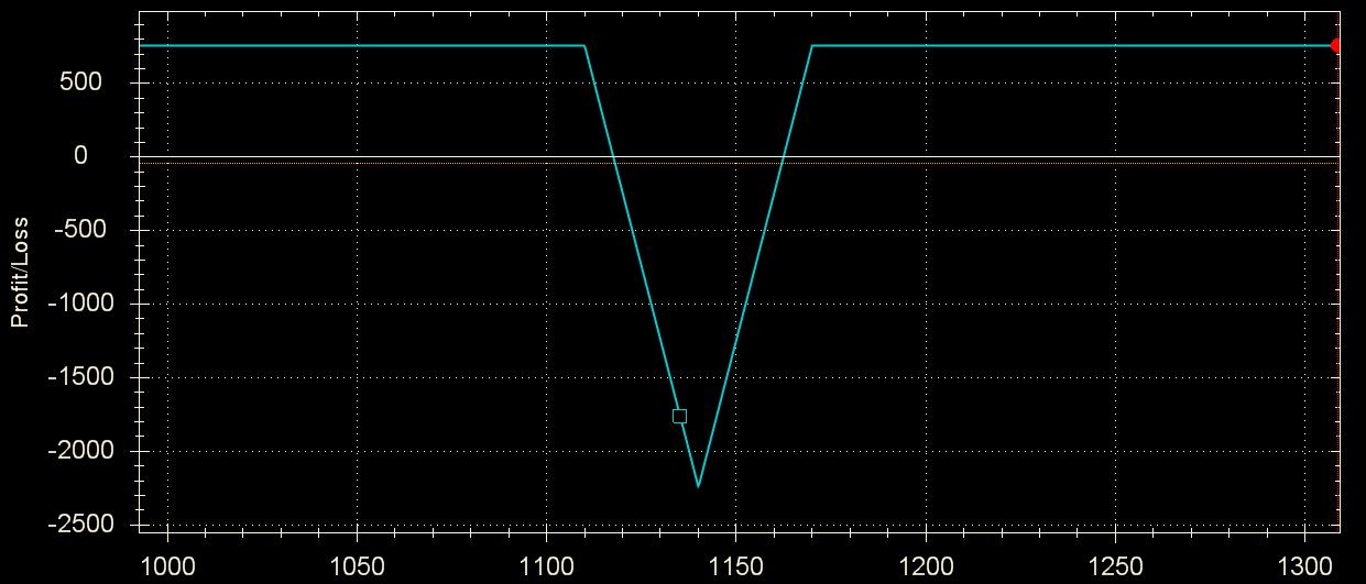 במקביל, על מנת להקטין את עלות רכישת הפוזיציה נמכור אופציות קול במחיר גבוה מ-1140 ונמכור אופציית פוט במחיר נמוך מ-1140 . במכירת האפציות נקטין אמנם את עלות הפוזיציה אך ניצור מצב שבו הרווח הצפוי לנו ישאר מוגבל.