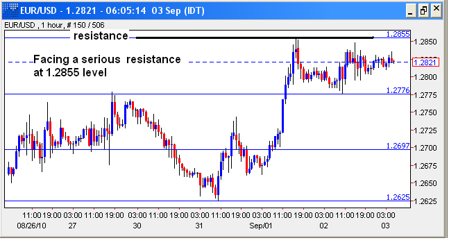 היורו התקרב לרמתו החזקה ביותר מזה שבועיים מול הדולר לאחר שהבנק המרכזי הותיר את הריבית ללא שינוי ברמה של 1% . דבריו של נשיא הבנק המרכזי ז\'אן קלוד טרישה הצליחו אף הם לגרום לאופטימיות בקרב המשקיעים. כל עוד נסחר הצמד יורו דולר מעל רמת ה 1.2800 המומנטום הינו חיובי ליורו ופוזיציית לונג עדיפה,ההתנגדות הבאה הינה 1.2860 במידה והצמד יחצה רמה זו היורו ימשיך את התחזקותו מול הדולר . היום צפויים להתפרסם המכירות הקמעונאיות הצפי לעלייה מפעם קודמת כ 0.3% לעומת 0.0%.