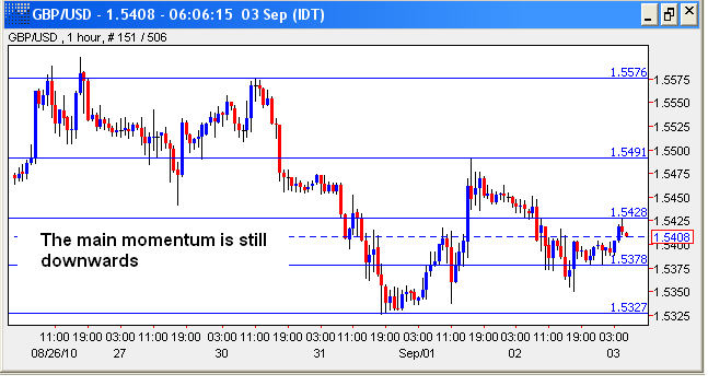 הפאונד נחלש יום שלישי ברציפות מול היורו והדולר עקב דו\"ח המחירים בבריטניה שפורסם אמש והראה שמחירי הבתים נפלו בצורה המשמעותית ביותר בחצי שנה האחרונה .(0.90%- לעומת צפי של 0.30%- בחודש אוגוסט) הצמד פאונד דולר עדין נסחר במגמת שלילית ועדיין נסחר מתחת לממוצע נע 10 על הגרף היומי לכן המומנטום הינו שלילי ,רמת התמיכה הבאה על הגרף השעתי ממוקמת באזור 1.5350 . היום צפוי להתפרסם מדד מנהלי הרכש שהצפי הינו ללא שינוי כ 53.10.