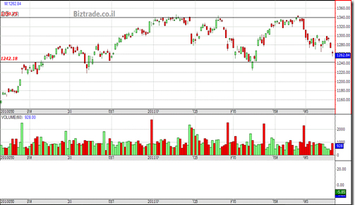 כך שבמידה ונישבור את רמת התמיכה 1240 לדעתי היעד הינו 1140, אם נחזור לכיוון 1340 אני מניח שהיעד הבא יהיה 1440.
