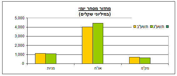 המחזור היומי במק"מ (בבורסה ומחוצה לה) הסתכם בכ-0.6 מיליארד שקל בתשע"ג נמוך בכ-10% לעומת המחזור בשנה הקודמת, וזאת בהמשך לירידה חדה יותר של