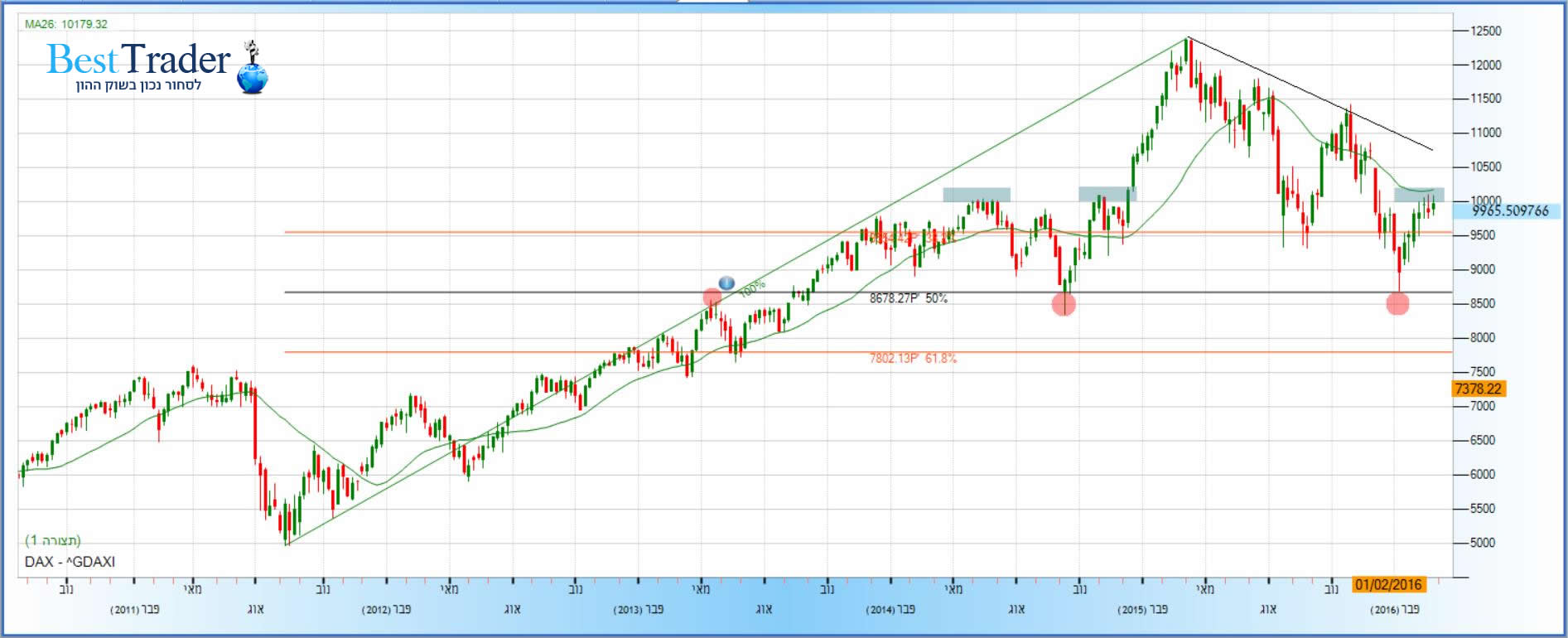 מדד DAX – גרף שבועי 9,965 נקודות. קרדיט: FXGraph