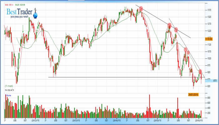 מדד ת"א נפט וגז – גרף שבועי 870 נקודות. קרדיט: FXGraph