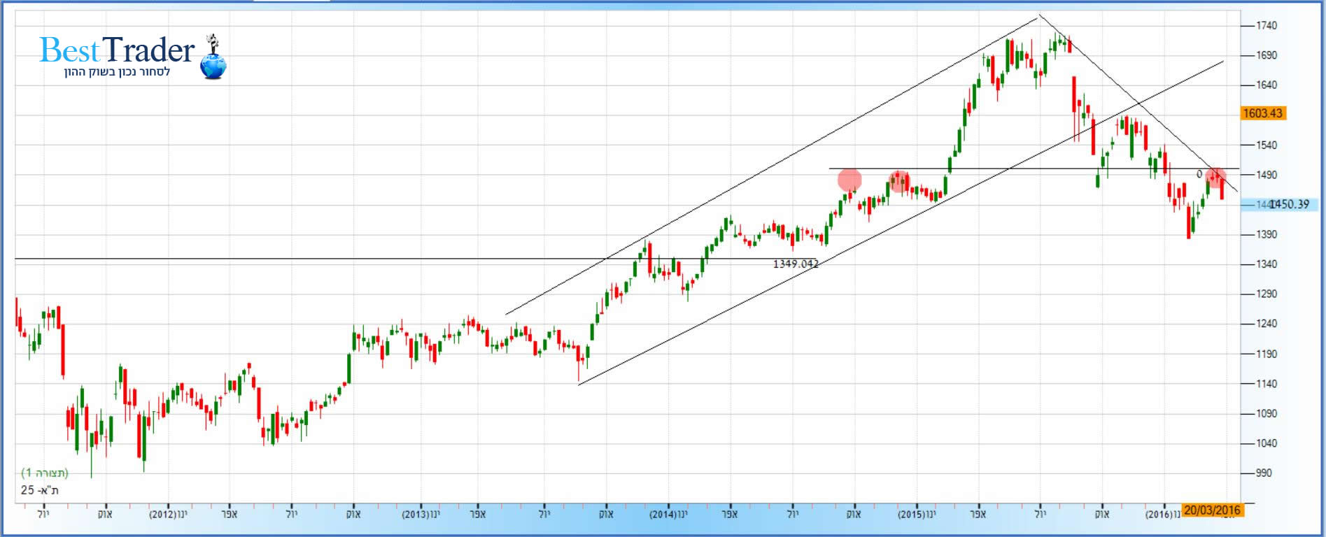 מדד ת"א 25 – גרף שבועי 1,450.39 נקודות. קרדיט: FXGraph