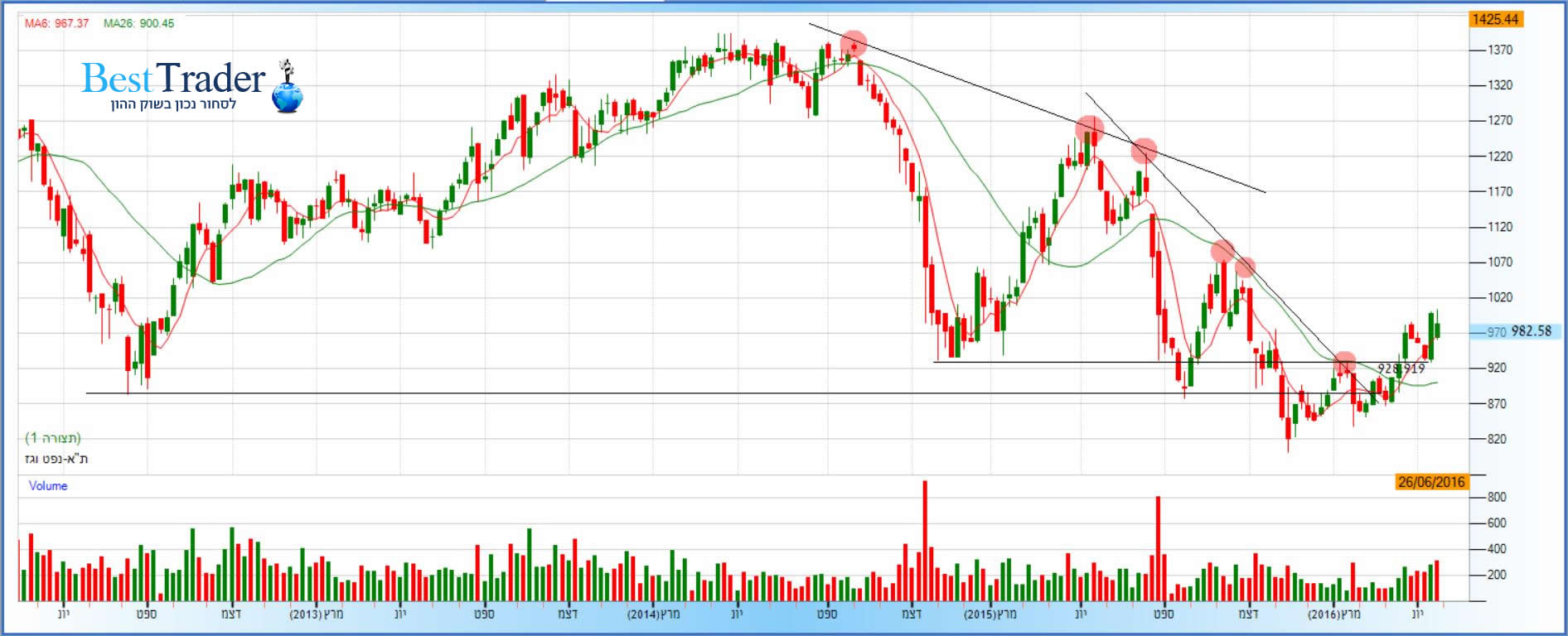מדד ת"א נפט וגז – גרף שבועי 982.58 נקודות. קרדיט: FXGraph