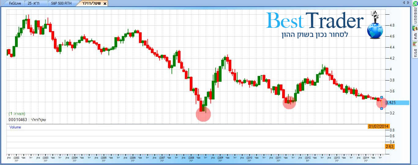 דולר – שקל – גרף חודשי. קרדיט: FXG פרימיום