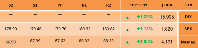 רביעי: השוק במרחק קצר משיא כל הזמנים והזדמנות ראשונה לשנת 2014 להיסחר בטריטוריה חיובית. בין דוחות הרווח שירכזו עניין בוול-סטריט נמצא את: DE, MET, WFM, CHK, CSCO, CBS, ,HSP.