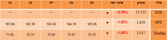 רביעי: יום צר נוסף ביומן הכלכלי שיכלול את פרסום התקציב לחודש מאי ע"י משרד האוצר בשעה 14:00 שעון ניו-יורק. הסוחרים ימשיכו להגיב לתנודתיות בשוק האג"ח ולעליית הריבית השם.