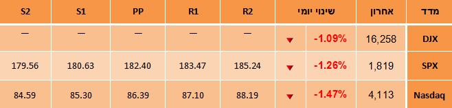 לולולמון (LULU) צללה ב-16.6% לרמה של 49.70$, לאחר שהחברה הנמיכה את תחזיות הרווח שלה. סודהסטרים (SODA) הצטרפה למצעד החברות שחותכות את תחזית הרווח וספגה מהלומה כאשר המשקיעים לחצו על כפתור ה"ברח" ושיגרו אותה לנפילה חדה של 26%.