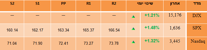 נתונים חזקים מהצפוי במכירות הקמעונאיים תרמו לריבאונד ונתנו זריקת מרץ לסקטור הצריכה שסיים בין המובילים. תעודת הסל XRT שעוקבת אחרי סקטור הקמעונאיים סיימה את היום בעליות של 1.6% לרמה של 78.07$. מניות הנדל"ן גם הציגו עוצמה ניכרת, בעוד תעודת הסל ITB על הסקטור זינקה ב-4.4% לרמה של 23.90$. הראלי במניות הנדל"ן הגיח לאחר שהסקטור רשם ירידות עקביות במהלך 3 השבועות האחרונים.