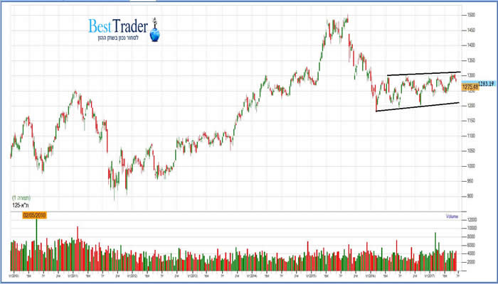 מדד ת"א 125 – גרף שבועי 1,283 נקודות. קרדיט: FXGraph
