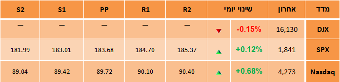 פורסט לבורטוריס (FRX) הייתה המניה החזקה ביותר במדד ה-S&P 500 לאחר שחברת אקטביס הודיעה כי תרכוש את חברת הביוטכנולוגיה בעסקה בשווי 25 מיליארד דולר. מניית FRX זינקה בתגובה ב-27.5% לרמה של 91.04$. יצרניות התרופות הגנריות כמו טבע (TEVA) ומילאן (MYL) הגיבו בעליות לחדשות. TEVA קפצה ב-3.3% לרמה של 45.67$.