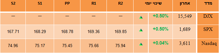 אזהרה! מטרת המידע המועבר בדף זה ("המידע") הינה למטרה לימודית בלבד, להרחבת ידע כללי בשוק ההון בכלל ובשימוש בשיטות מסחר ובשיטת הניתוח הטכני בפרט. מובהר בזאת כי החברה, מנהליה, עובדיה, בעלי המניות ומי מטעמה, אינם בעלי רישיון יועץ ו/או מנהל תיקים על פי הדין הישראלי, ואינם מתיימרים לייעץ לכל אדם בקשר עם כדאיות רכישה, מכירה אחזקה והשקעה בני"ע ונכסים פיננסיים. אין לראות במידע משום המלצה או חוות דעת כאמור וכל המקבל החלטה כלשהי על סמך המידע עושה זאת על אחריותו בלבד. דע כי המידע אינו יכול להוות תחליף לייעוץ המתחשב בנתונים ובצרכים המיוחדים של כל אדם, וכי השקעה בניירות ערך ובנכסים פיננסיים עלולה להוביל להפסדים. לחברה, מנהליה, עובדיה ומי מטעמה יכול ויהיה עניין אישי בכל נושא הקשור במידע ויכול והם מחזיקים בני"ע ספציפי או מסוג המוזכר במידע. המשתמש במידע מוותר על כל זכות תביעה וכל טענה כלפי החברה ו/או מי מטעמה.