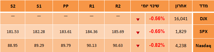 מדד ה-S&P 500 סיים את היום בירידה של 0.65% בעוד מדד הנאסדק סוגר בירידה של 0.82%, כאשר האחרון קוטע רצף עליות מתמשך של 8 ימים ברציפות.