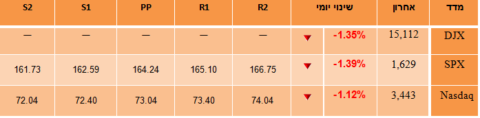בחדשות החברות, פדקס (FDX 100.54$) דיווחה על רווח רבעוני גבוה מהצפיות, הודות לעסקי משלוחי הקרקעה של החברה ועל רקע מחירי דלק סילוני נמוכים יותר. אך החברה, שנחשבת לברומטר לפעילות הכלכלה כולה, הוציאה תחזית מאכזבת. מניית FDX שהחלה את היום בעליות חדות החזירה את מרביתן יחד עם מכירות החיסול בשוק וסיימה את היום בעליות של 1.07%.