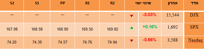 מדד ה-S&P 500 ממשיך לכוון גבוה ובשבוע האחרון הצליח גם לפרוץ את השיא התוך יומי שנקבע ב-22 במאי. שיא היסטורי חדש ובאותה נשימה: זהירות צבע טרי! למרות הפריצה לשיא חדש, המחזורים נמוכים עת עונת המלפפונים עוטפת את וול-סטריט. תיקון בהחלט עשוי להיות בקלפים. נסיגה ראשונית עשויה להוביל את השוק למנוחה על ממוצע נע ל-20 יום שנסחר ברמה של 165.38 נק' ולאחר מכן לממוצע נע ל-50 יום ברמת 163.31 נק'.
