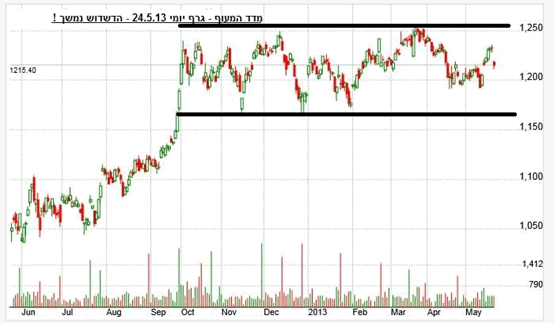 אנו מזכירים כבר שבועות רבים ונציין זאת גם הפעם, מדד המעוף ממשיך בדשדוש. כל עוד לא יפרצו (פריצה ברורה) אחד מגבולות הדשדוש 1165-1248 לא יתקבל כל איתות חשוב בנוגע למדד וכי המדד ימשיך להתל בסוחרים פעם אחר פעם.