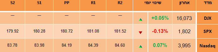 שלישי: יום המסחר הקרוב יכלול נתונים על התחלות הבניה בשעה 8:30, כאשר הסוחרים בוול-סטריט יבחנו האם ישנם סימנים אחרונים להתרככות מבשרים משהו בטווח הארוך עבור הסקטור. סקטור הדיור איבד קצת מומנטום לאחרונה, עקב עליה בריבית המשכנתאות. יחד עם זאת ההתאוששות בסקטור עדיין נמשכת. מחזורי המסחר צפויים להישאר נמוכים, כאשר חלק מהסוחרים כבר מקפלים ציוד לקראת 'חג ההודיה' שיחול ביום חמישי.