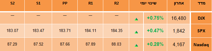 סקטור הקמעונאות קפץ ב-0.8%. מניית אורבן אאוטפיטר (URBN) עלתה ב-2.2% לרמה של 37.55$ והיתה אחת המניות החזקות ב-S&P 500. אמזון.קום (AMZN) השייכת אף היא לסקטור עלתה ב-1.3% לשיא של 404.39$.