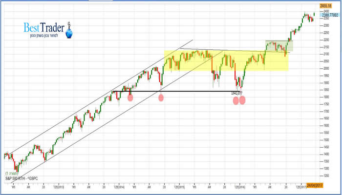 לאחר שבחודש פברואר כשל ולא שבר את מחסום ה-2400 נק' מנסה כעת מדד ה-S&P500 לקבוע שיא חדש ולנפץ גם את המחסום הזה. כפי שנראים פני הדברים, גם כאן מדובר רק בעיניין של זמן עד שנראה את המדד פורץ לשיא חדש.