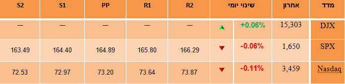 השוק החל את השבוע האחרון בדיוק באותו דפוס של השבועות האחרונים, כאשר ביום רביעי הוא רושם שיא נוסף של כל הזמנים ברמה של 169.07 נק' בתעודת הסל SPY שעוקבת אחרי מדד ה-S&P 500. נר "הבולען" שנוצר ביום רביעי עוטף את טווח המסחר של היום הקודם גם בגבוה היומי וגם בנמוך היומי ונחשב לאחד מנרות הריוורסל החזקים ביותר שבנמצא. השוק בילה את חמישי ושישי בנסיון תמיכה סביב ממוצע נע 20, על –כן רמה זו שנמצאת בתחילת השבוע ב-163.66 נק' תהווה את נקודת המבחן הראשונה עבור המגמה העולה. ירידה מרמה זו תוביל את השוק למטה אל עבר התמיכה המסומנת ברמת 159.71 נק' ותהווה ריטסט לפריצת תבנית "הספל וידית" האחרונה. תיקון עמוק יותר עשוי לדחוף את השוק לתמיכה בממוצע נע 50 ברמת 158.53 נק', עם תמיכה משמעותית נוספת באזור 153-153.50 נק'.