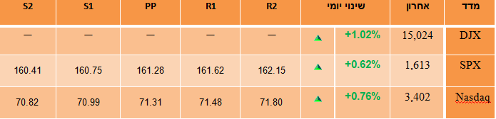 מדד ה-S&P 500 חזר מרמות קיצון של מכירות יתר בלתי מוצדקות חזרה לממוצעים הנעים ל-20 יום ו-50 יום. הגאפ אפ של הפתיחה, הוציא את הרוח מהמפרשים להרבה קונים שחיפשו לקנות את השוק, אך נרתעו לאחר הקפיצה המוקדמת ביום. כך השוק נותר לתנועה צידית לאורך כל היום. נר הדוג'י שנוצר על גרף הדיילי בעל הזנב הארוך מלמעלה מצביע על היעדר הכוח של הקונים. השוק הגיע לגבוה של ה-20/6 אך נכשל במשימה להכנס לתוך הגאפ שפתוח עד לרמת 163.45 נק' בתעודת הסל SPY.
