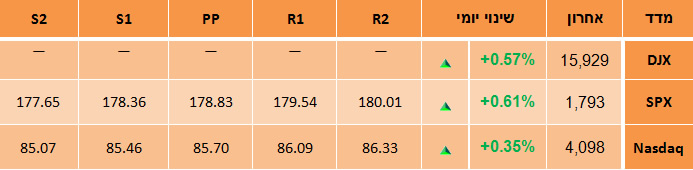 לאחר נעילת המסחר, החוזים העתידיים על המדדים הגדולים בארה"ב רצו למעלה על רקע ידיעות כי הבנק המרכזי של טורקיה העלה בצורה חדה את הריבית. נכון לכתיבת שורות אלו החוזים העתידיים על מדד ה-S&P 500 נסחרים בעליות של יותר מ-0.5%.