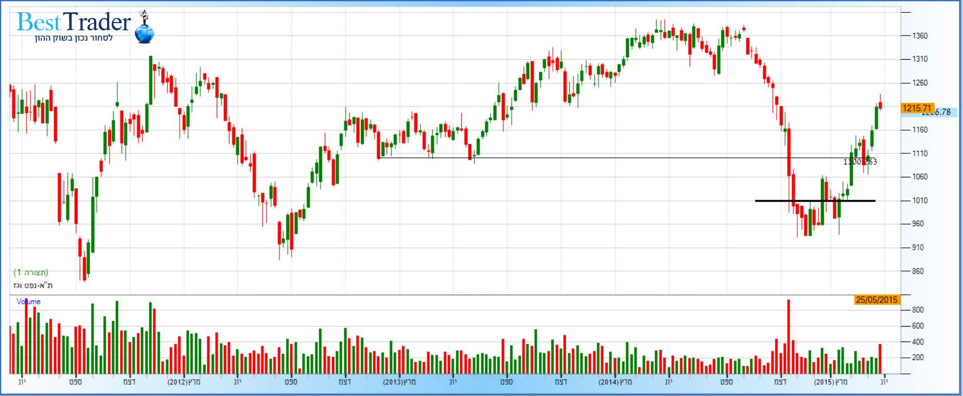 מדד ת"א נפט וגז – גרף שבועי, 1,206.78 נקודות. קרדיט: FXGraph