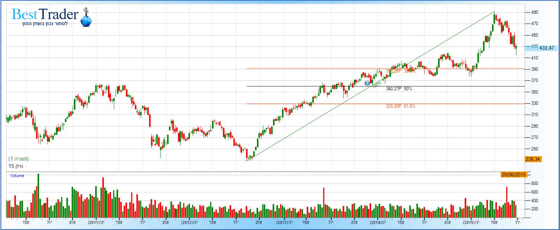 מדד נדלן 15 – גרף שבועי 431.47 נקודות. קרדיט: FXGraph