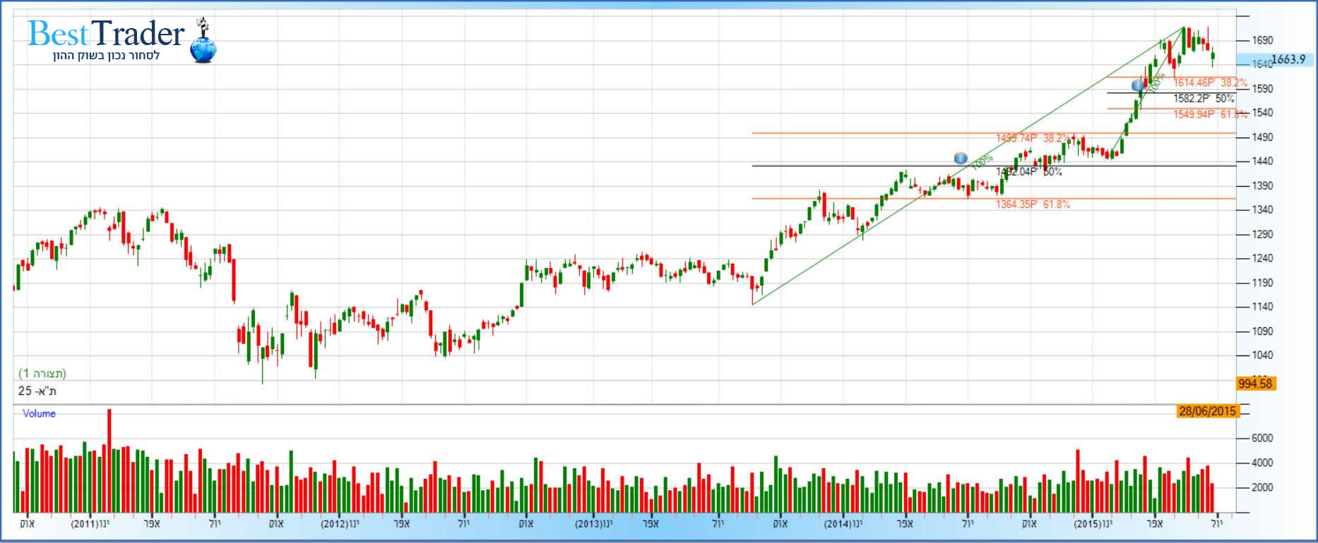 מדד ת"א 25 – גרף שבועי 1,663.9 נקודות. קרדיט: FXGraph