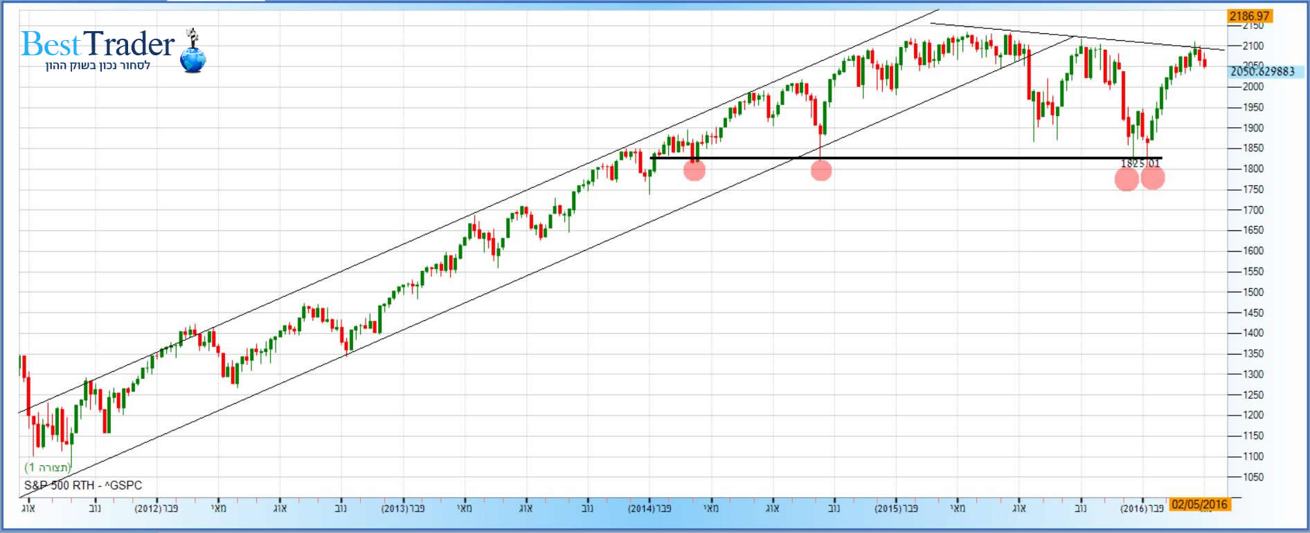 מדד S&P500 – גרף שבועי 2,050.63 נקודות. קרדיט: FXGraph