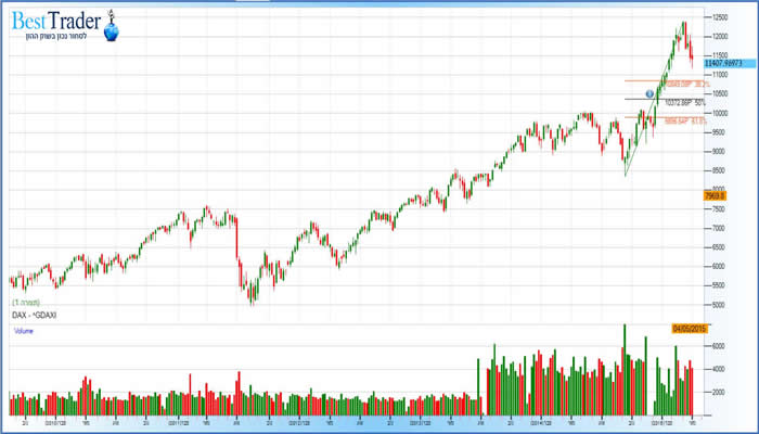 לגבי מדד ה-DAX אפשר לומר באופן הרבה יותר בטוח שאחרי חודשים ארוכים של עליה (הזדקרות) התיקון הגיע והוא צפוי להמשך עד 10850-9900 נקודות.